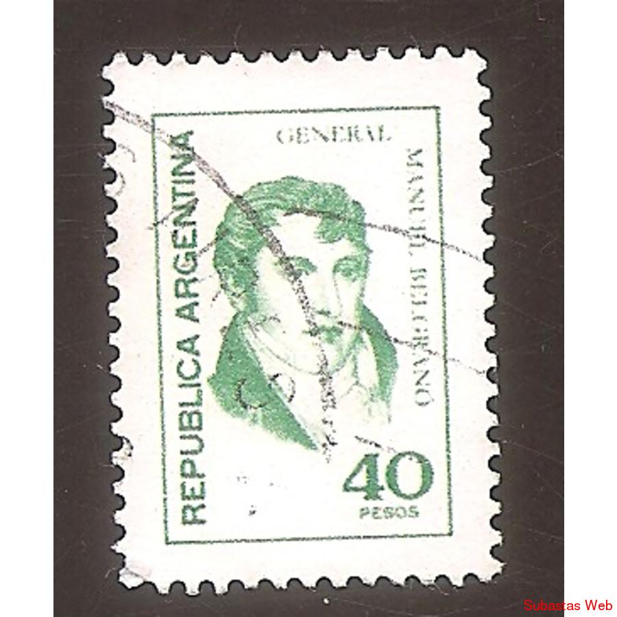 ARGENTINA 1976 CORREO ORDINARIO PROCERES TAMAÑO REDUCIDO: BELGRANO DE $40, PAPEL TIZADO, USADA, NROCAT: MT1066