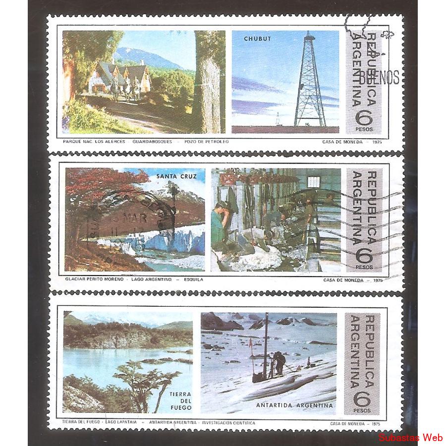ARGENTINA 1975 PROVINCIAS ARGENTINAS II: CHUBUT, SANTA CRUZ Y TIERRA DEL FUEGO, USADAS, NROCAT: MT1035-37