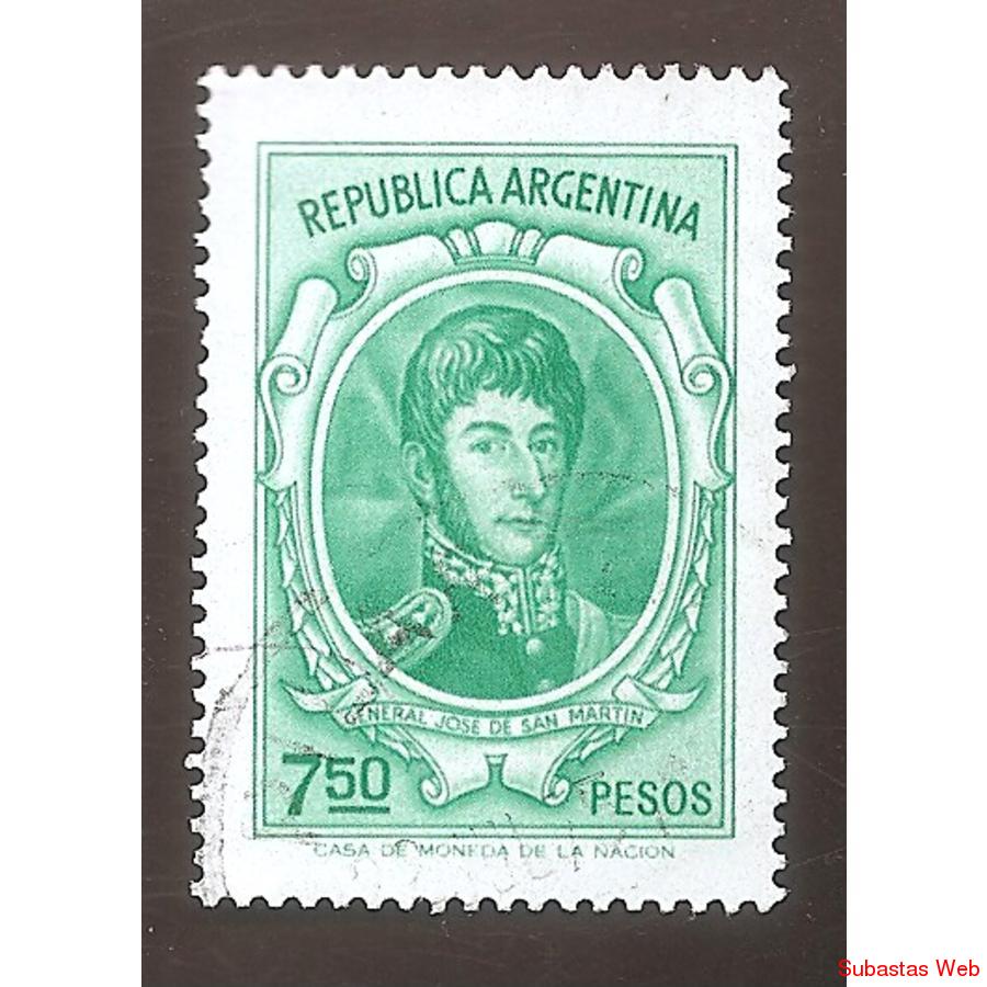 ARGENTINA 1975 CORREO ORDINARIO PROCERES Y RIQUEZAS: SAN MARTIN DE $7,50, SIN FILIGRANA, USADA, NROCAT: MT1009