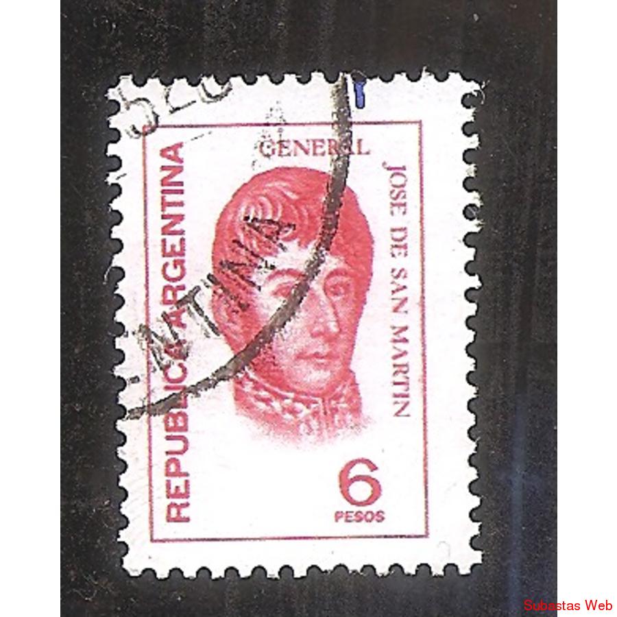 ARGENTINA 1975 CORREO ORDINARIO PROCERES TAMAÑO REDUCIDO, SAN MARTIN DE $6, FOSFORESCENTE SIN FILIGRANA, USADA, NROCAT: MT1007