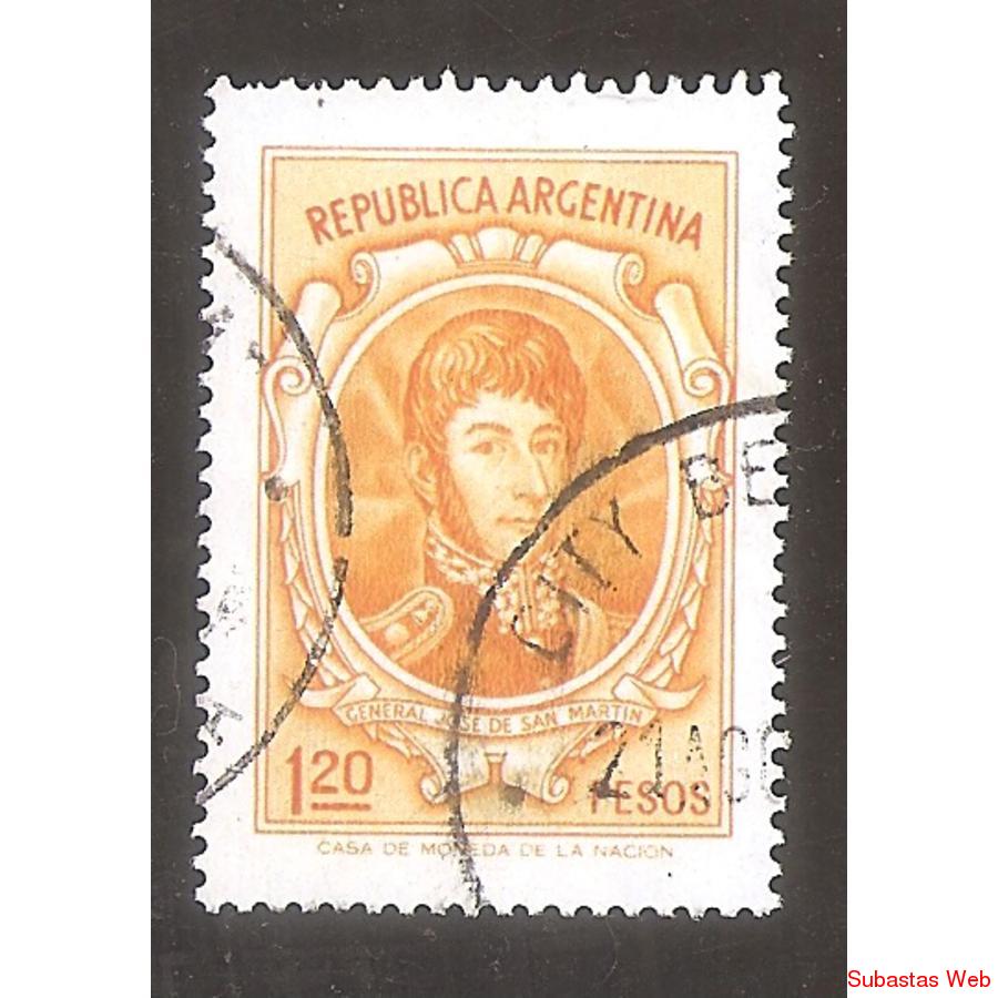ARGENTINA 1973 CORREO ORDINARIO PEOCERES Y RIQUEZAS: SAN MARTIN DE $1,20, HUECOGRABADO SIN FILIGRANA, USADO, NROCAT: MT953
