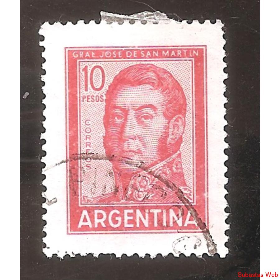 ARGENTINA 1966 CORREO ORDINARIO PROCERES Y RIQUEZAS NACIONALES, SAN MARTIN DE $10, OFFSET, USADA, NROCAT: MT732