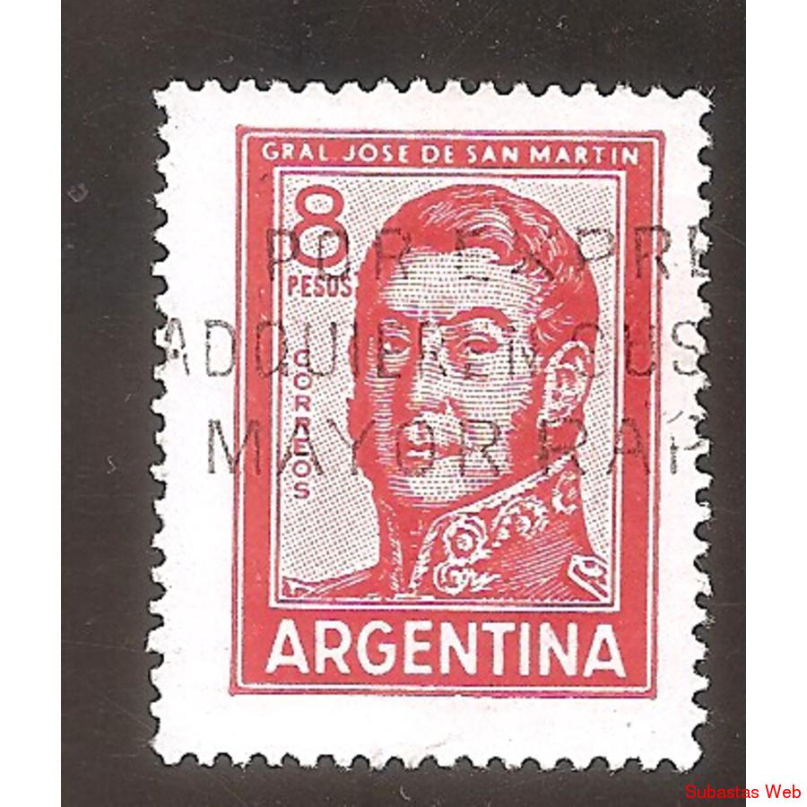 ARGENTINA 1965 CORREO ORDINARIO PROCERES Y RIQUEZAS NACIONALES: SAN MARTIN DE $8, TIPOGRAFIA, USADA, NROCAT: MT706