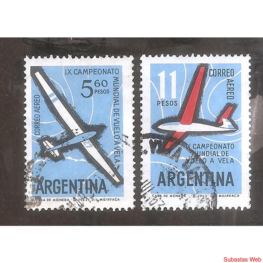 ARGENTINA 1963 NOVENO CAMPEONATO MUNDIAL DE VUELO A VELA, SERIE COMPLETA, USADAS, NROCAT: MT89-90 Aereas