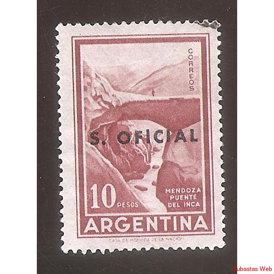 ARGENTINA 1959 CORREO ORDINARIO PROCERES Y RIQUEZAS NACIONALES: PUENTE DEL INCA, PAPEL MATE, FILIGRANA RA, SOBRECARGA SERVICIO OFICIAL TIPO VIII, NROCAT: MT606A(396)