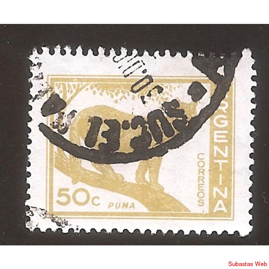 ARGENTINA 1959 CORREO ORDINARIO PROCERES Y RIQUEZAS NACIONALES: PUMA OFFSET, PAPEL TIZADO, USADA, NROCAT: MT603Aa