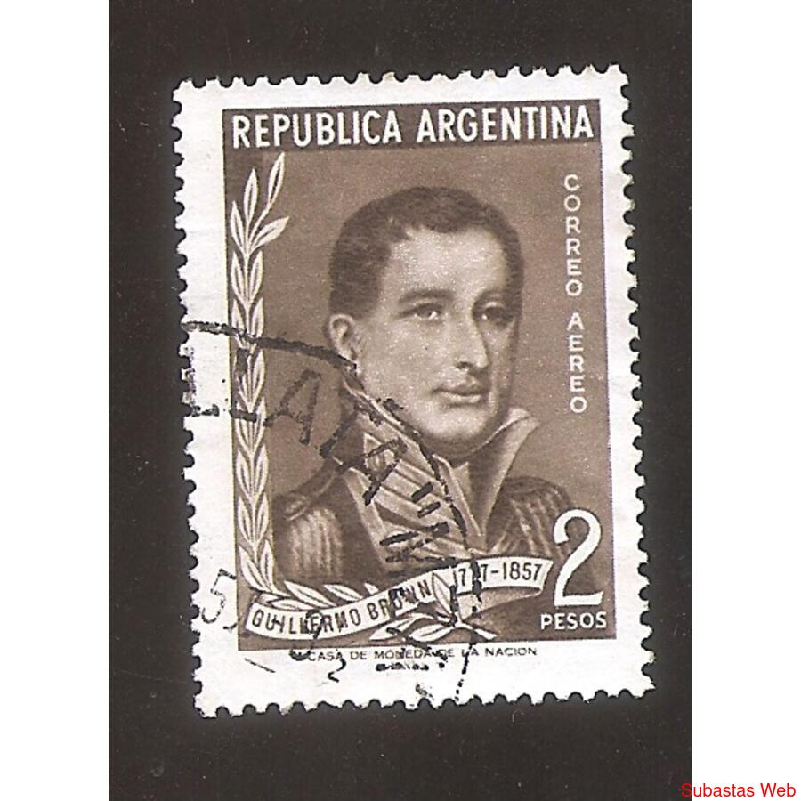 ARGENTINA 1957 CENTENARIO DEL FALLECIMIENTO DEL ALMIRANTE BROWN, USADA, NROCAT: MT45Aerea GJ1080