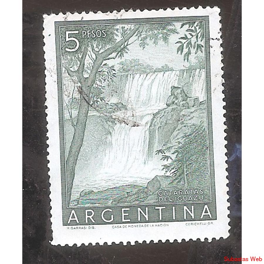 ARGENTINA 1954 PROCERES Y RIQUEZAS NACIONALES: CATARATAS DEL IGUAZU, PAPEL TIZADO, DENTADO 13,5 USADA, NROCAT: MT549