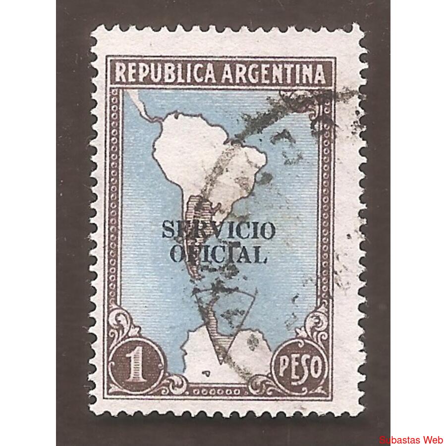 ARGENTINA 1951 PROCERES Y RIQUEZAS NACIONALES: MAPA CON ANTARTIDA, PAPEL MATE IMPORTADO, SOBRECARGA SERVICIO OFICIAL DE 11mm USADA, NROCAT: MT512(348a)