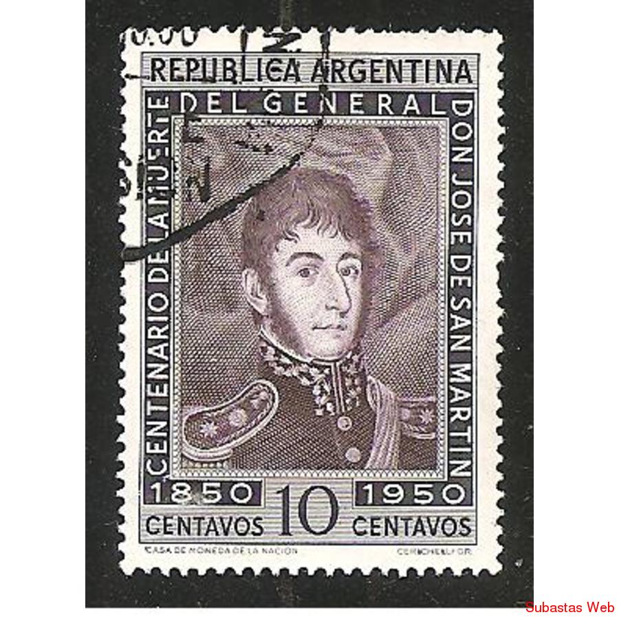 ARGENTINA 1950 CEBTENARIO DE LA MUERTE DEL GENERAL SAN MARTIN $0,10 USADA, NROCAT: MT503 GL976
