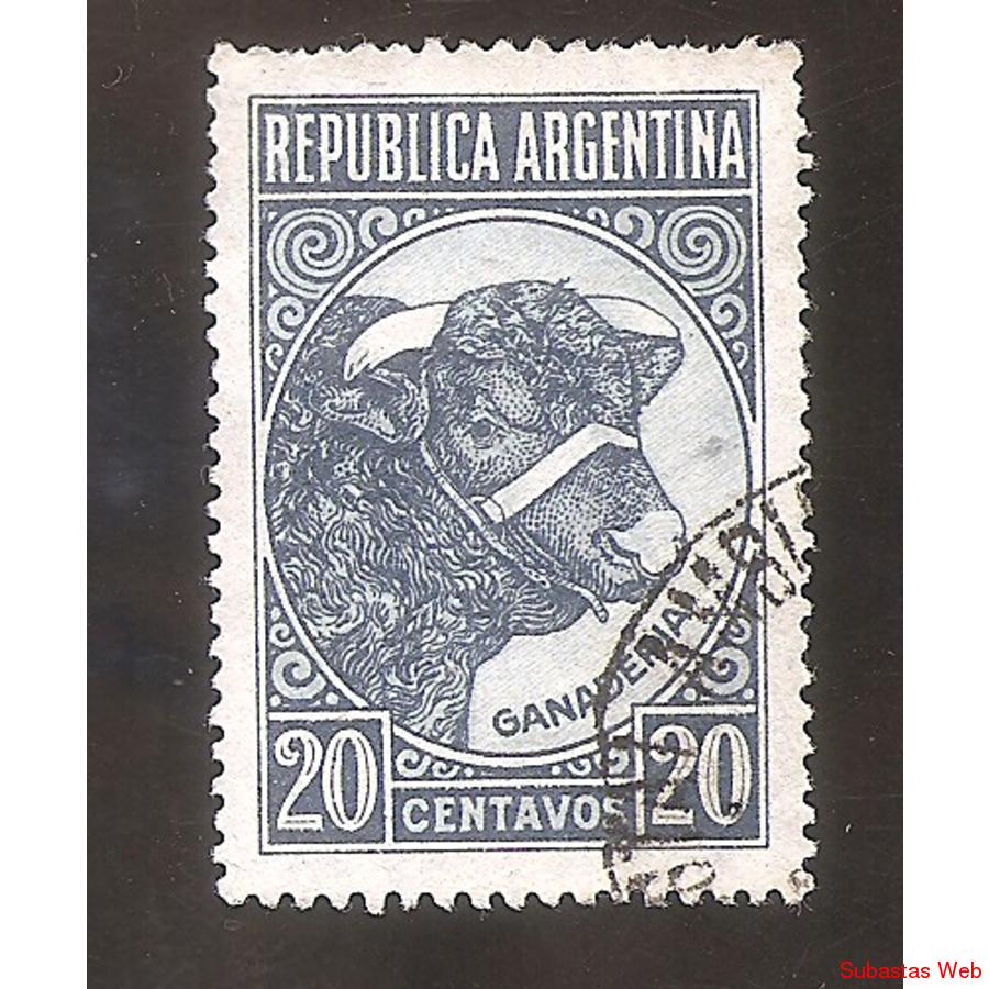 ARGENTINA 1942 PROCERES Y RIQUEZAS NACIONALES: TORO TAMAÑO GRANDE, FILIGRANA RAYOS ONDULADOS, USADA, NROCAT: MT424I