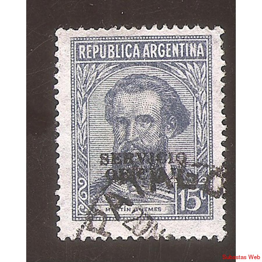 ARGENTINA 1942 PROCERES Y RIQUEZAS NACIONALES: GUEMES, FILIGRANA RAYOS RECTOS NITIDA (RR), SOBRECARGA SERVICIO OFICIAL DE 12mm. USADA, NROCAT: MT423IIa(344C)
