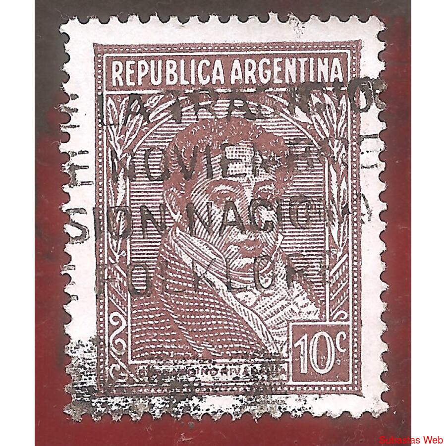 ARGENTINA 1939 PROCERES Y RIQUEZAS NACIONALES: RIVADAVIA, TIPOGRAFIA, PAPEL TIZADO, FILIGRANA SOL RA ONDULADOS, USADA, NROCAT: MT395X