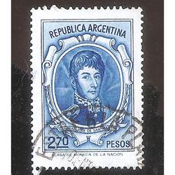 ARGENTINA 1935 PROCERES Y RIQUEZAS NACIONALES: PETROLEO, FILIGRANA SOL RA RAYOS ONDULADOS, SOBRECARGA SERVICIO OFICIAL DE 11mm. USADA, NROCAT: MT379(346A)