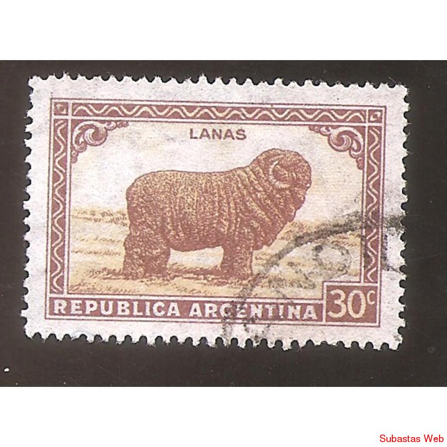 ARGENTINA 1935 PROCERES Y RIQUEZAS NACIONALES: OBEJA FILIGRANA SOL RA A RAYOS RECTOS (RR), USADA, NROCAT: MT377I