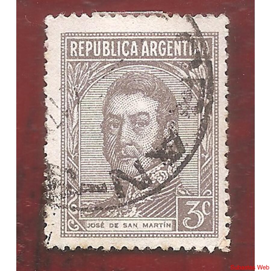 ARGENTINA 1935 PROCERES Y RIQUEZAS NACIONALES: SAN MARTIN FILIGRANA SOL RA CON RAYOS ONDULADOS, USADA, NROCAT: MT366)