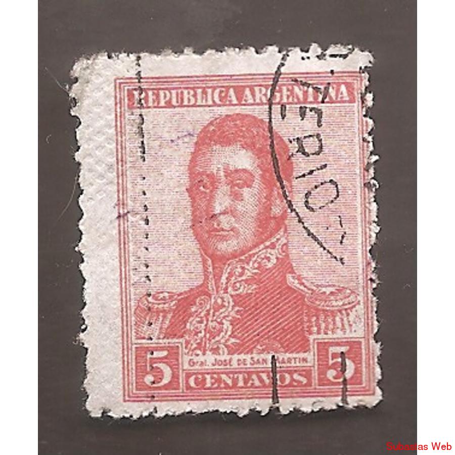 ARGENTINA 1918 SAN MARTIN EN RECUADRO TIPO 1917 SIN FILIGRANA, DENTADO 13,5x12,5 USADA NROCAT: MT233B GJ462