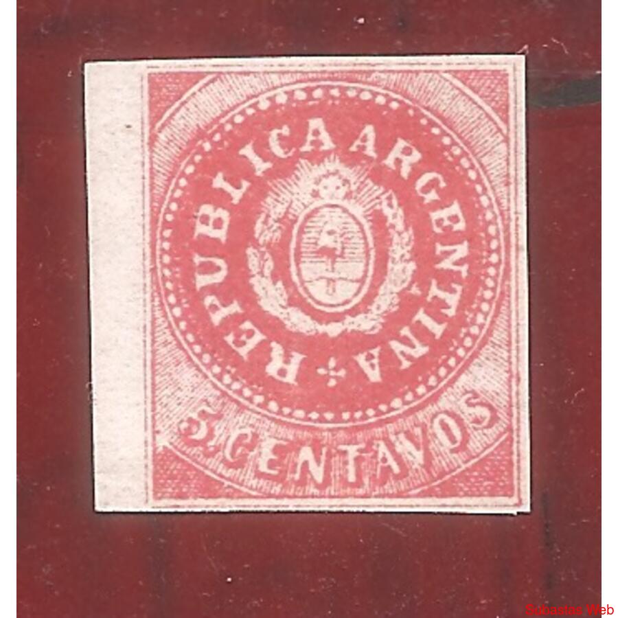 ARGENTINA 1862 ESCUDITO 5 CENTAVOS CON C ESTRECHA, REIMPRESION, NUEVO CON GOMA Y APENAS RESTO DE BISAGRA, BUENOS MARGENES, MUY INTERESANTE, NROCAT: MT5g GJ15