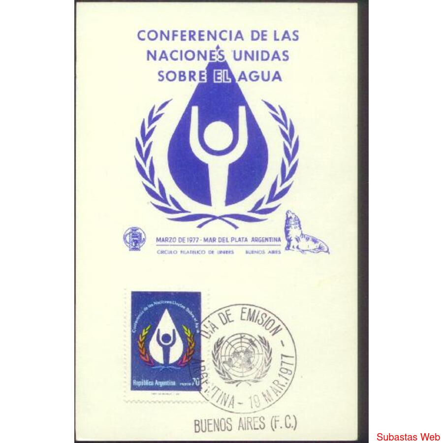 ARGENTINA 1977 TARJETA PRIMER DIA DE EMISION: CONFERENCIA DE LAS NACIONES UNIDAS SOBRE EL AGUA, TARJETA CONMEMORATIVA, NROCAT: MT1078