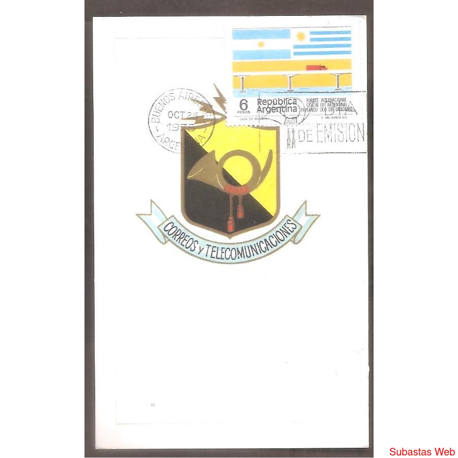 ARGENTINA 1975 TARJETA DIA DE EMISION: OBRAS DE INFRAESTRUCTURA NACIONALES, TARJETA POSTAL DE CORREOS Y TELECOMUNICACIONES, NROCAT: MT1027