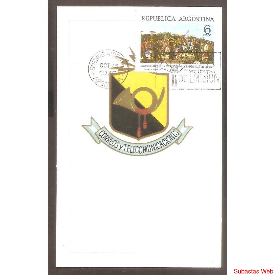 ARGENTINA 1975 TARJETA DIA DE EMISION: SESQUICENTENARIO DE LA INDEPENDENCIA DEL URUGUAY, TARJETA POSTAL DE CORREOS Y TELECOMUNICACIONES, NROCAT: MT1021
