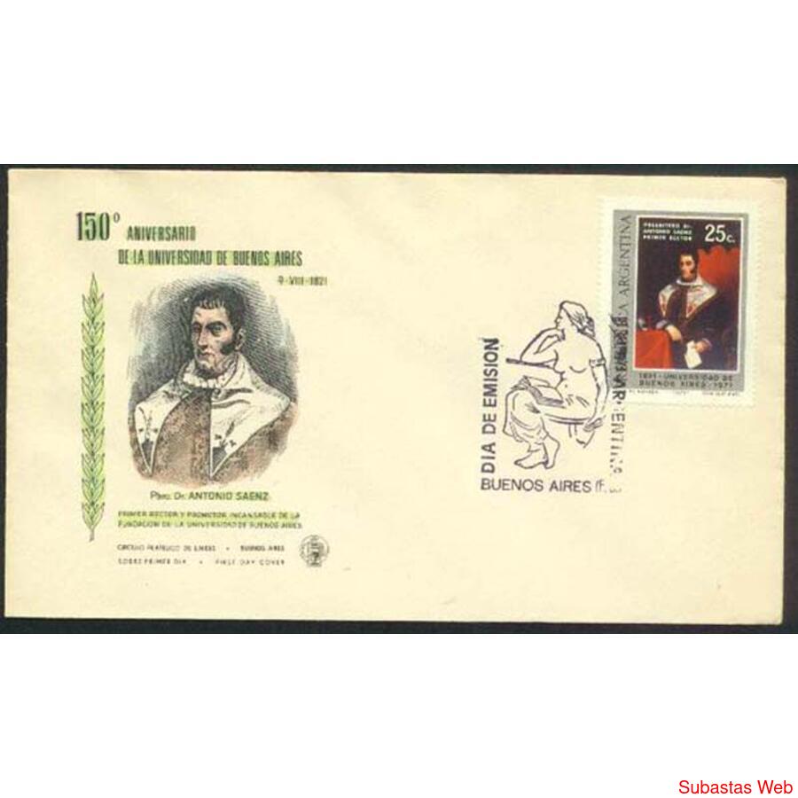 ARGENTINA 1971 SOBRE PRIMER DIA DE EMISION: 150 ANIVERSARIO DE LA CREACION DE LA UNIVARSIDAD DE BUENOS AIRES, SOBRE DEL CIRCULO FILATELICO DE LINIERS, NROCAT: MT903