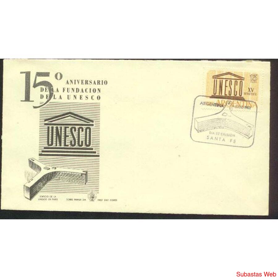 ARGENTINA 1962 SOBRE PRIMER DIA DE EMISION: XV ANIVERSARIO DE LA UNESCO, SOBRE DEL CIRCULO FILATELICO DE LINIERS, NROCAT: MT A84