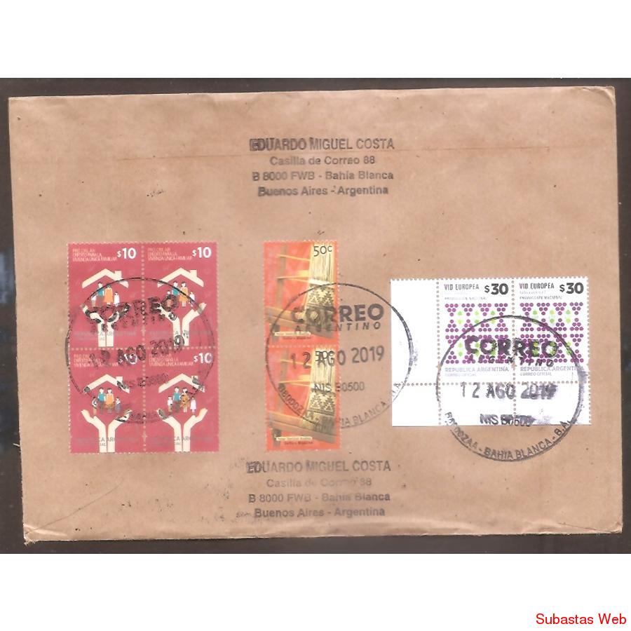 Sobre Circulado el 12 de Agosto de 2019 desde Bahia Blanca provincia de Buenos Aires a Capital Federal, certificada con muchos y variados sellos postales. Estos sellos despegados tienen un valor según catalogo Guillermo Jalil de u$s22,50