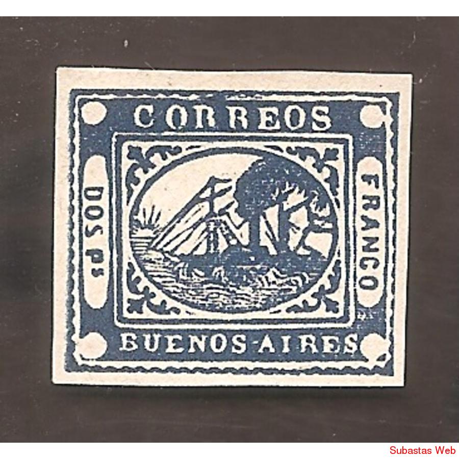ARGENTINA 1858 BARQUITO DE BUENOS AIRES, DOS Ps, AZUL, NROCAT: MT 1, GJ 5, BUENA REIMPRESION, NUEVO SIN GOMA