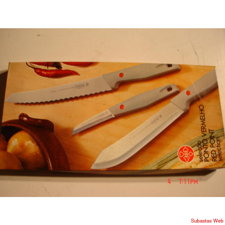 JUEGO DE 3 CUCHILLAS MUNDIAL RED POINT PONTO VERMELHO DE ACERO INOXIDABLE.