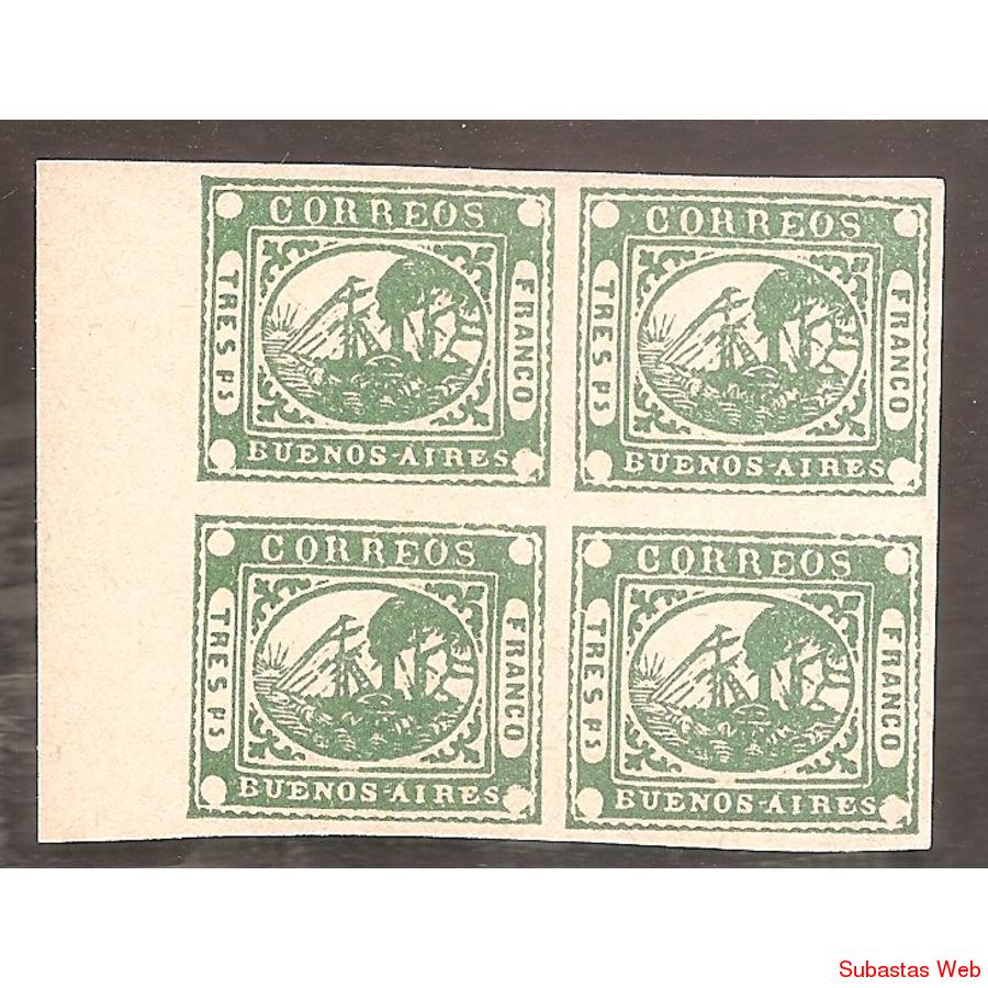 ARGENTINA 1858, BARQUITOS DE BUENOS AIRES, TRES Ps, CUADRITO , BUENA REIMPRESION, NROCAT: MT2, GJ6 NUEVOS SIN GOMA