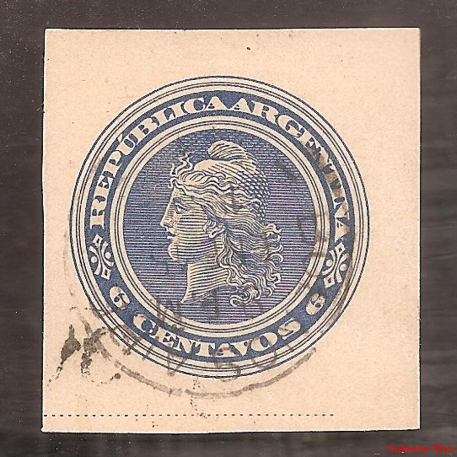 ARGENTINA 1902 CABEZA DE LIBERTAD IMPRESION LISA, DE 1 CENTAVO COLOR AZUL, CORTADA DE TARJETA POSTAL 38