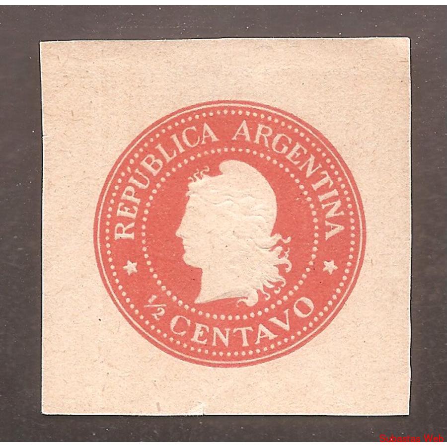 ARGENTINA 1896 CABEZA CHICA DE LIBERTAD DE 1 CENTAVO, CON RELIEVE, COLOR ROJO NARANJA, CORTADA DE FAJA POSTAL 29