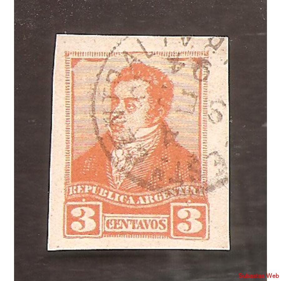 ARGENTINA 1892 3 PROCERES: RIVADAVIA DE 3 CENTAVOS, CORTADO DE CARTA POSTAL 20