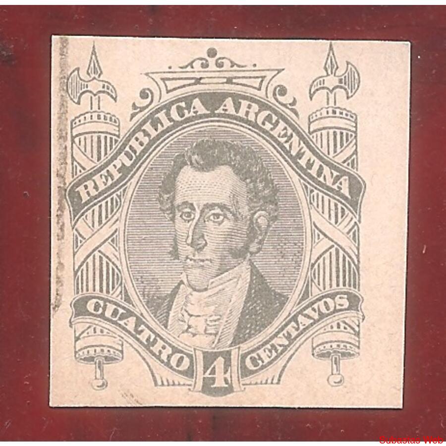 ARGENTINA 1978 PROCERES: ESTEBAN DE LUCA DE 4 CENTAVOS, CORTADO DE TARJETA POSTAL 1