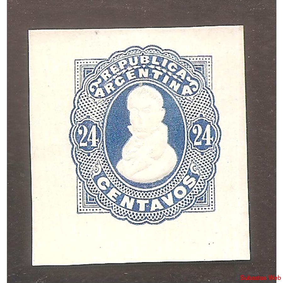 ARGENTINA 1878 PROCERES: VIEYTES DE 24 CENTAVOS, PAPEL CON LISTADO VERTICAL O LEVEMENTE INCLINADOI HACIA LA IZQUIERDA, CORTADO DE SOBRE POSTAL 9, (VALOR SEGUN CATALOGO JALIL DE SOBRE COMPLETO U$S 20)