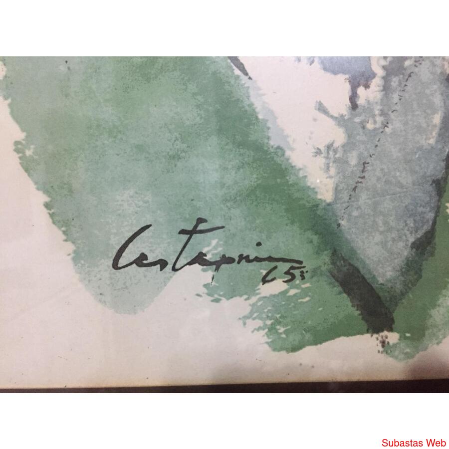 Cuadro de Castagnino enmarcado en cuadro con vidrio, bordes dorados y pastpartout verde musgo.