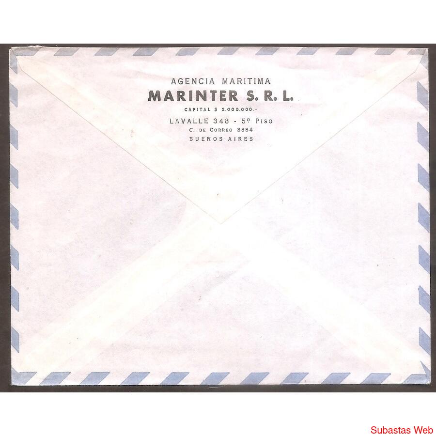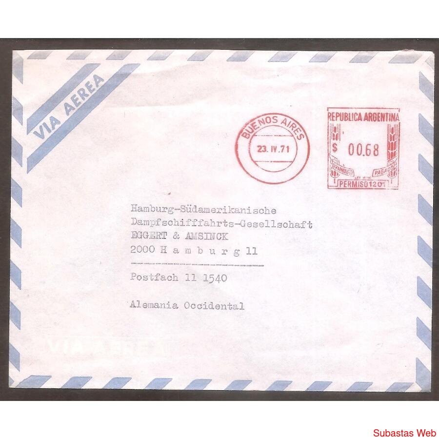 ARGENTINA 1971 SOBRE CIRCULADO NUMERO 168 : Sobre , Circulado el 23 de Mayo de 1971, de Buenos Aires a Hamburgo Alemania, matasello muy claro, sellos: maquina franqueadora , al dorso membretado: AGENCIA MARITIMA MARINTER S.R.L.
