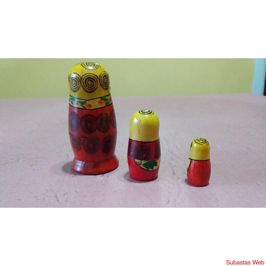 muñecas en 1. La mas alta mide 7 cm. La Matrioshka, uno de los souvenirs mas conocidos de Rusia. Su nombre "Matrioshka" proviene del nombre femenino Matrona, muy popular en la antigua Rusia, que significa "madre". La historia de esta encantadora muñeca rusa dice que es protectora del hogar, que guarda, cuida y lleva adentro de si todos y que es la que en los momentos de peligro abre su viente para esconder y proteger a la familia. Tambien, que puede cumplirse algun deseo profundo si es escrito en un papelito y se lo deja durante dos noches en la anteultima muñequita.}