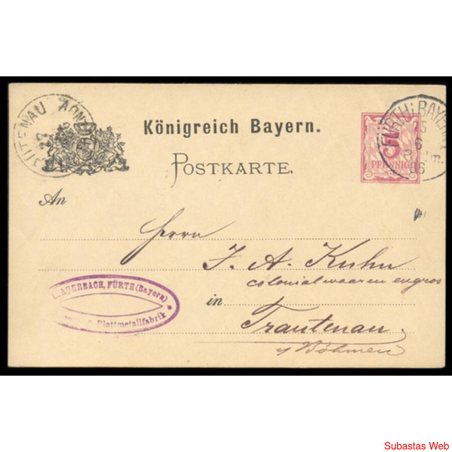 ALEMANIA REICH. BAVIERA 1886 POSTKARTE De FURT A TRATENAU