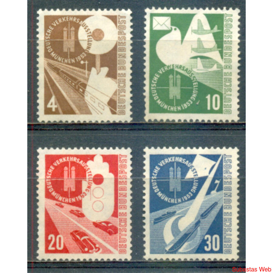 ALEMANIA BDR. Yv 53 / 56. SERIE COMPLETA x 4 VALORES NUEVOS SIN GOMA. "TRANSPORTE y COMUNICACIONES"