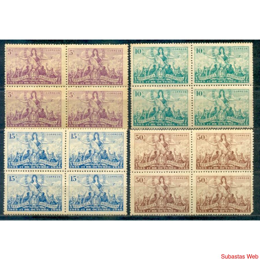 ARGENTINA. GJ935 + 936 + 937 + 938 "PRIMER ANIVERSARIO DEL 17 DE OCTUBRE" 4 VALORES DE LA SERIE DE 5 EN CUADRITOS NUEVOS
