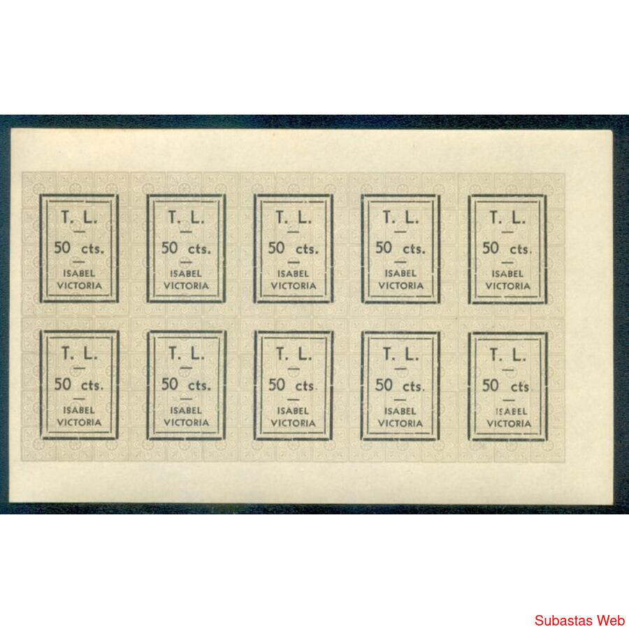 ARGENTINA. HOJITA BLOCK SIN DENTAR x 10 ESTAMPILLAS / VIÑETAS / ETIQUETAS O TIKECTS DE VIAJE "ISABEL VICTORIA 50 cts B.A."