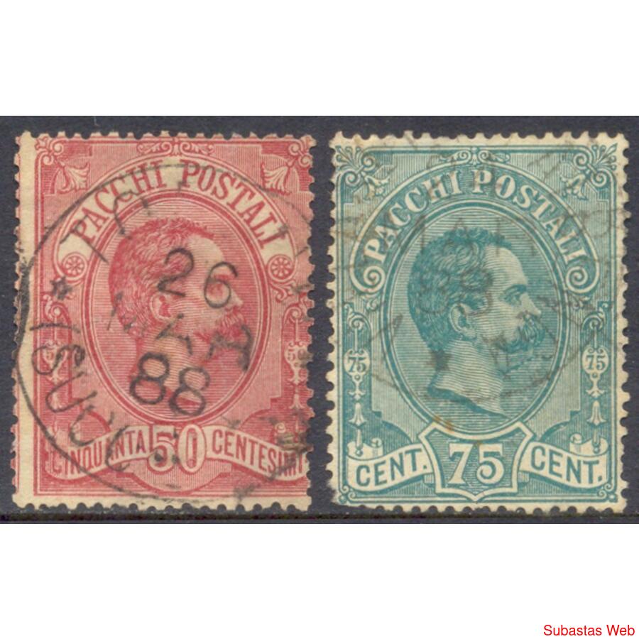 ITALIA. Sc. # Q 3 + Q 4. 1884. REY HUMBERTO I de SABOYA. 50 y 75 cent. Estampillas para encomienda. 2 buenos ejemplares usados