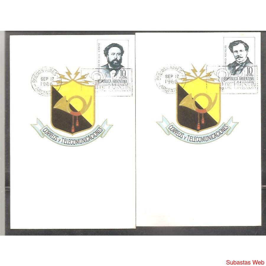 ARGENTINA 1965 CINCO TARJETAS PRIMER DIA DE EMISION DE ESCRITORES ARGENTINOS, TARH¡JETAS OFICIALES DEL CORREO Y TELECOMUNICACIONES: NROCAT: MT709-13