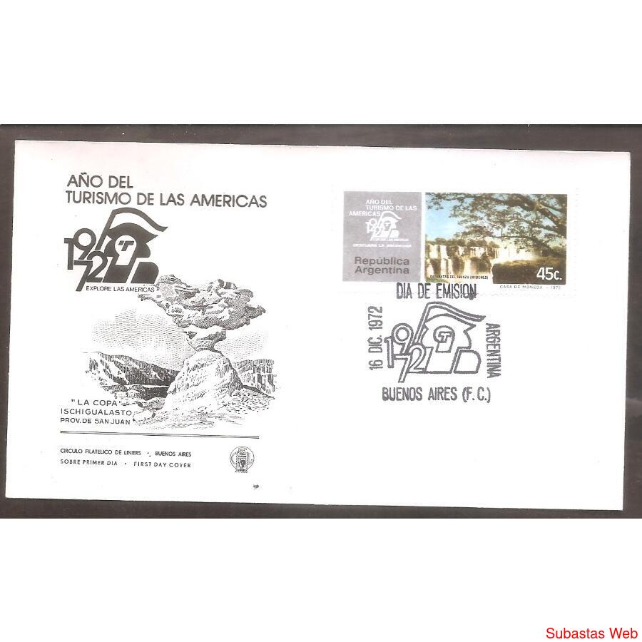 ARGENTINA 1972 SOBRE PRIMER DIA DE EMISION: AÑO DEL TURISMO DE LAS AMERICAS, SOBRE DEL CIRCULO FILATELICO DE LINIERS: NROCAT: MT935