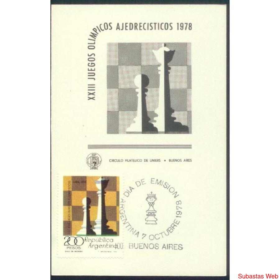 ARGENTINA 1978 TARJETA PRIMER DIA DE EMISION DE LOS XXIII JUEGOS OLIMPICOS AJEDRECISTICOS EN BUENOS AIRES, TARJETA DEL CIRCULO FILATELICO DE LINIERS, NROCAT: MT 1143