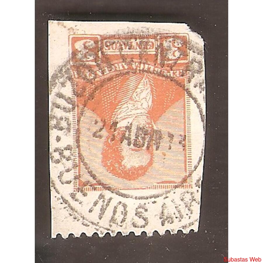 ARGENTINA 1892 RIVADAVIA 3 CENTAVOS DE TREA PROCERES, SIN DENTAR CORTADO DE CARTA POSTAL 20 O TARJETA POSTAL, BUEN MATASELLO DE BUZON CENTRAL DE BUENOS AIRES, FECHADO 25 DE ABRIL DEL AÑO ????