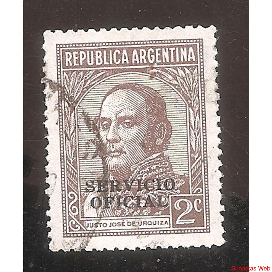 ARGENTINA 1935 CORREO ORDINARIO PROCERES Y RIQUEZAS NACIONALES, URQUIZA SOBRECARGA 'SERVIVIO OFICIAL' DE 12 MILIMETROS, USADA, NROCAT: MT365(337B)
