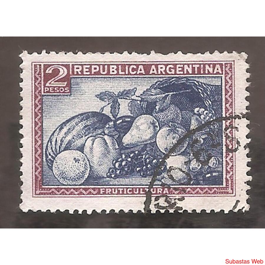 ARGENTINA 1935(381) PROC Y RIQ: FRUTAS AZUL, FILIGRANA RA-R